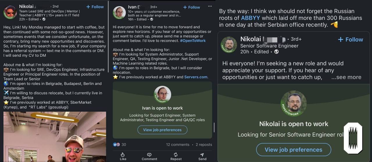 По словам уволенных, вчера днем руководство созвало их на планерку с отделом кадров. Встреча происходила в онлайн-формате: работникам запретили писать в чат, отключили видео и микрофоны, а затем без объяснения причин объявили об увольнении. Вскоре сотрудникам отключили отключили все корпоративные доступы. Сейчас в X и Linkedin можно найти несколько десятков постов бывших сотрудников ABBYY из Сербии, Кипра и Будапешта о поиске новой работы. Всего увольнения могли коснуться более сотни человек.