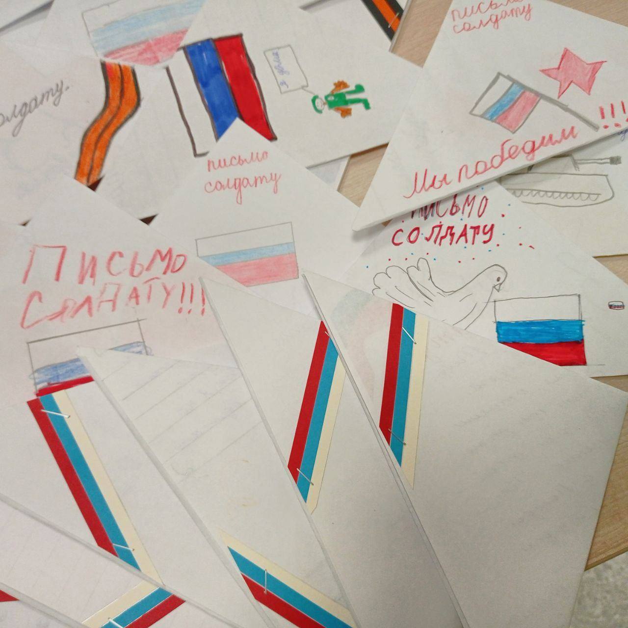 В последние несколько дней госучреждения по всей стране проводят акцию «Весточка на фронт» — дети пишут письма для военных, прикладывают к ним рисунки и проводят фотосессии, которые позже размещают в соцсетях со специальным хештегом. «Цель акции — поддержать военнослужащих, которые выполняют свой долг в рамках СВО, выразить им благодарность и восхищение их мужеству. И воспитать у подрастающего поколения гордость за свою страну, формирование у молодежи представления о мужестве, долге, чести, ответственности перед своей Родиной», — говорится в описании мероприятия.