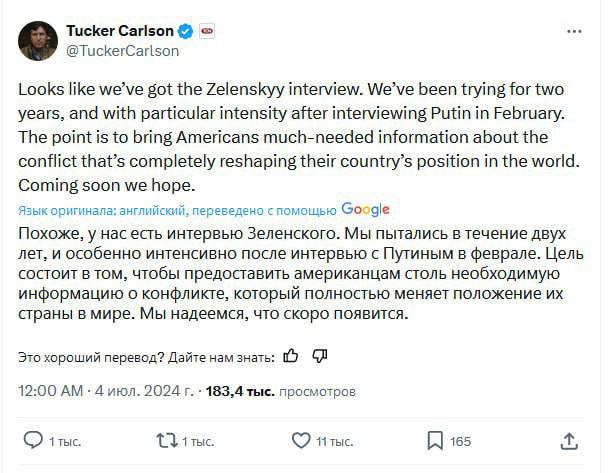 В соцсети X он сообщил, что его команда пыталась организовать интервью два года, «особенно интенсивно» после встречи с Путиным. По словам журналиста, он хочет донести до жителей США «необходимую информацию о конфликте, который полностью меняет положение их страны в мире».