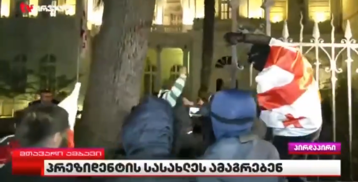 После митинга на площади Свободы митингующие направились в сторону резиденции президенты Орбелиани. При попытке штурмовать президентский дворец произошли столкновения с силовиками, спецназ применил против демонстрантов перцовый спрей, а вскоре — водомет. Сообщается о нескольких пострадавших.
