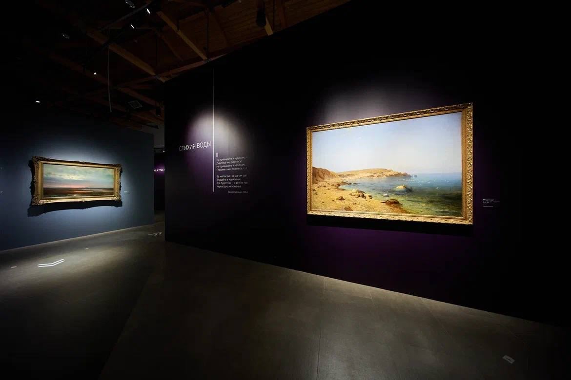 Зрители могут посмотреть картины Ивана Айвазовского, Алексея Саврасова, Архипа Куинджи, Ильи Репина, Игоря Грабаря, а также их учеников и последователей. Тематически экспозиция объединяет такие сюжеты, как: «Облака и тучи», «Радуга», «Светлый день», «Рассветы и закаты», «Лунная ночь» и «Стихия воды».