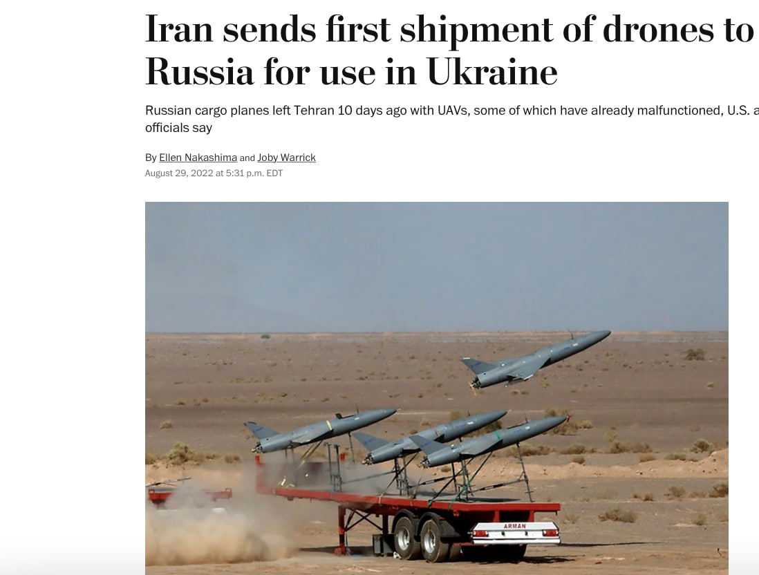 Ранее The Washington Post рассказали о том, что РФ столкнулась с неудачами и техническими проблемами при использовании беспилотников из Ирана. По данным американских СМИ, российские военные выразили недовольство качеством техники, которую планируют использовать в Украине. Журналисты рассказали о том, что представители РФ минимум дважды посещали аэродром в Иране, а страна уже поставила России дроны серий Mohajer-6 и Shahed.